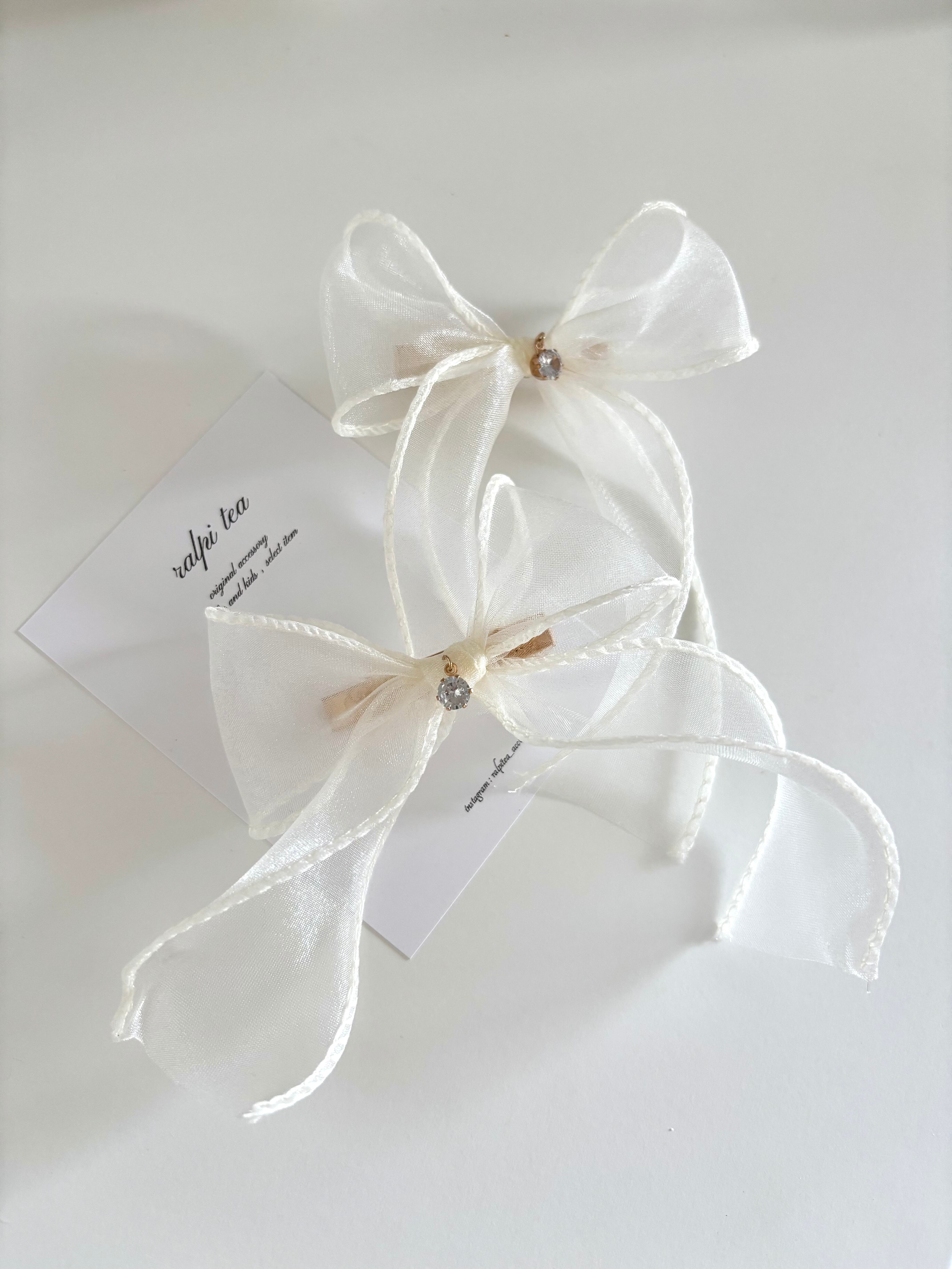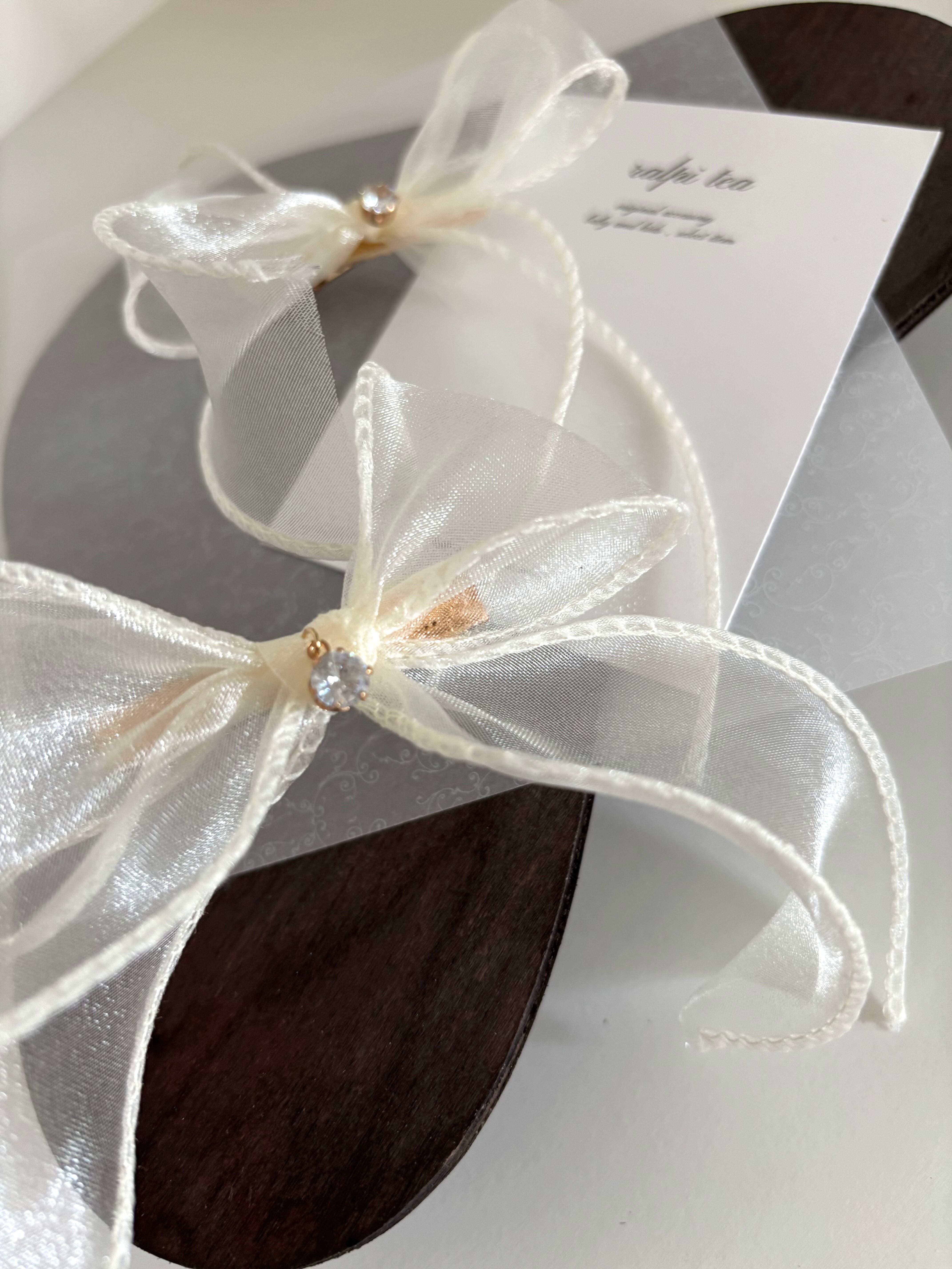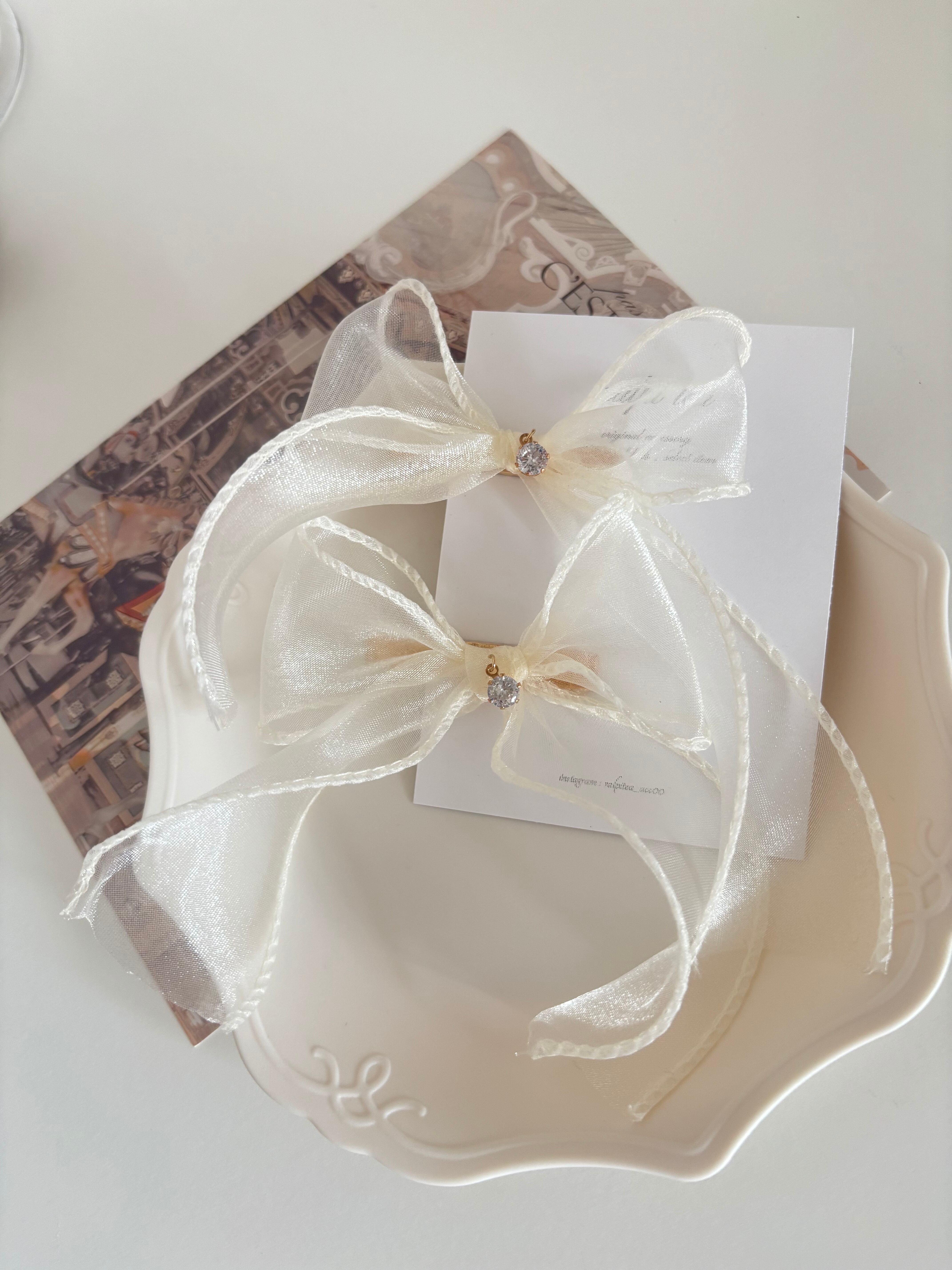 white tulle ribbon hair clip set