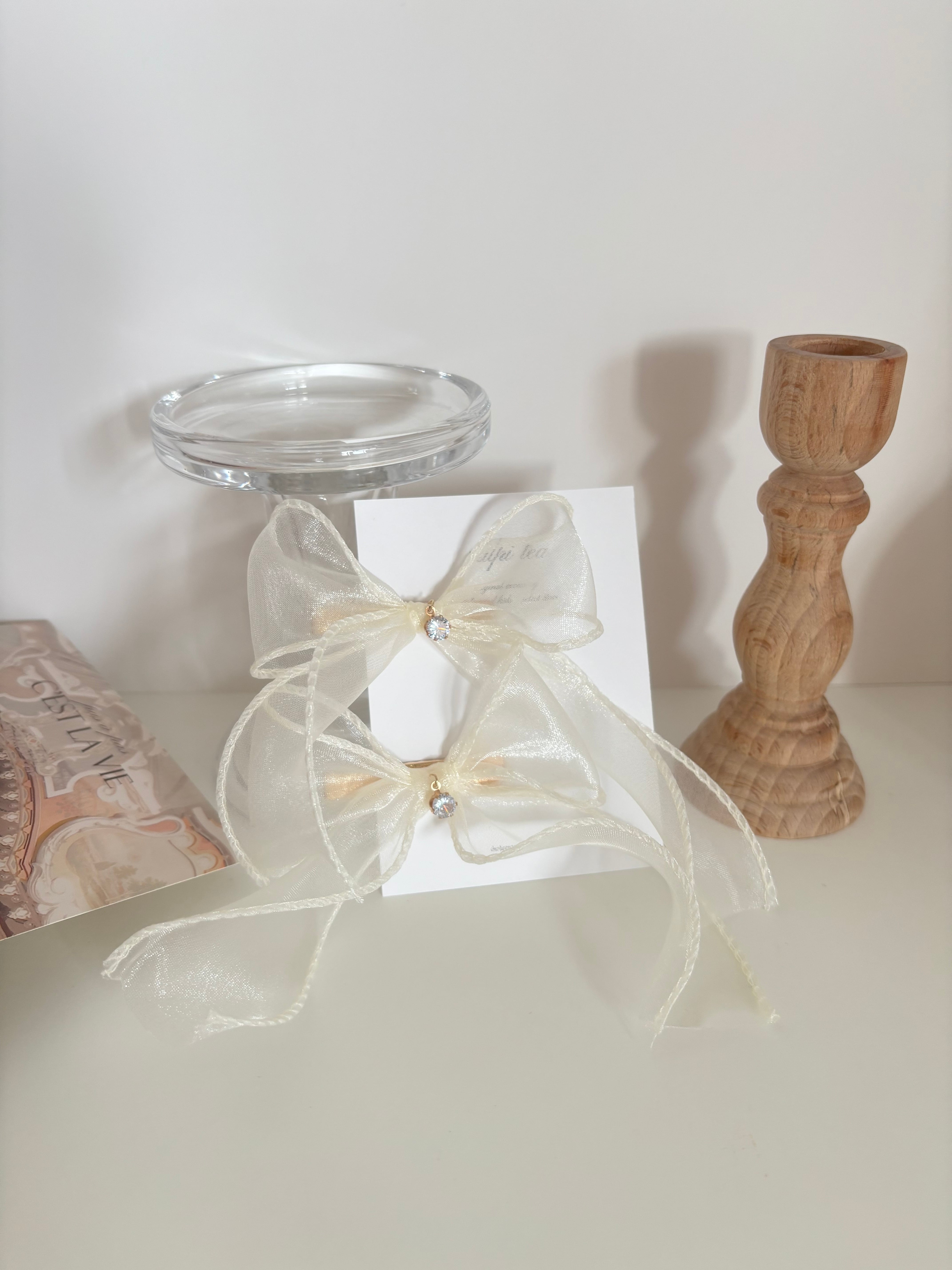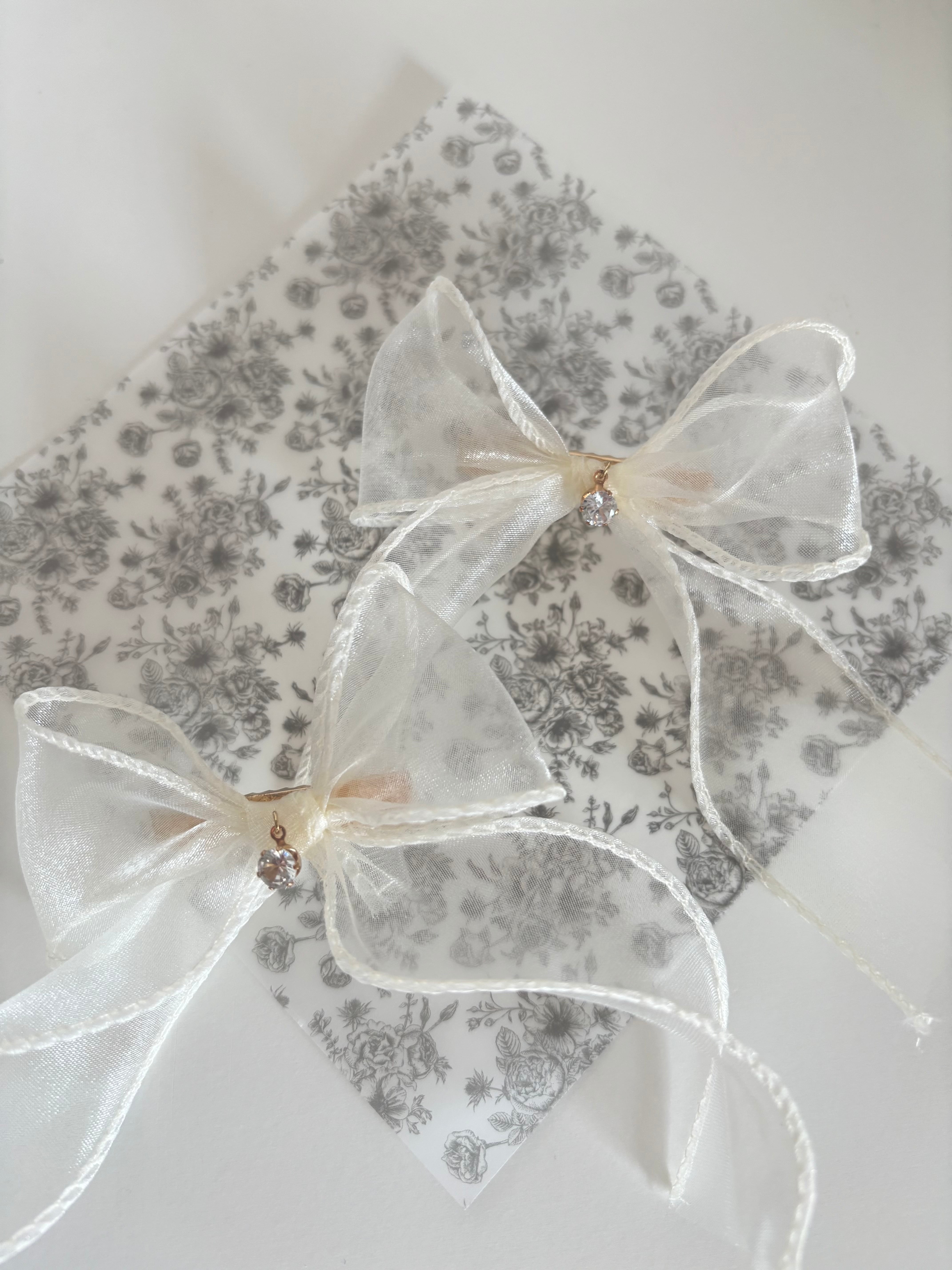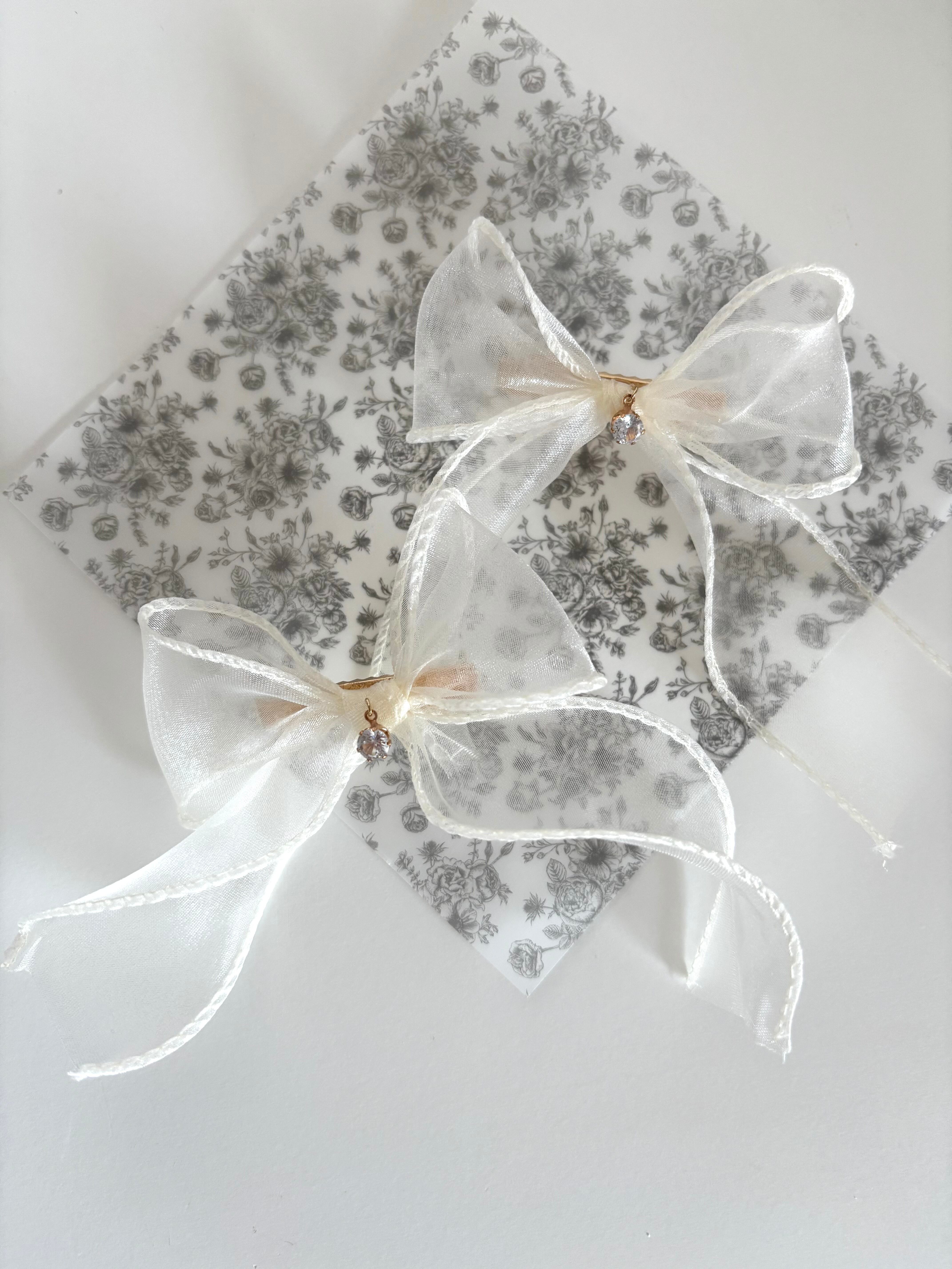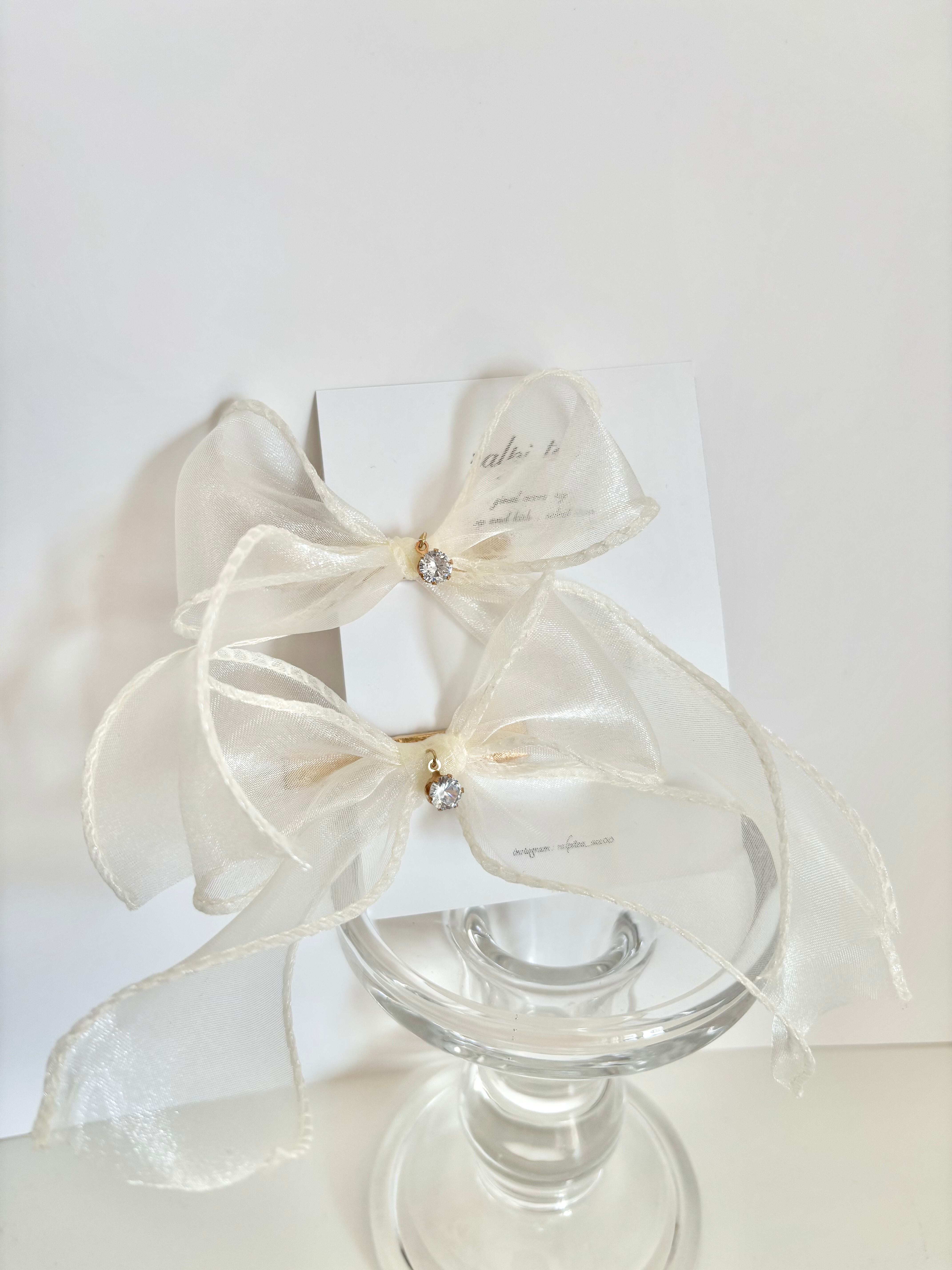 white tulle ribbon hair clip set
