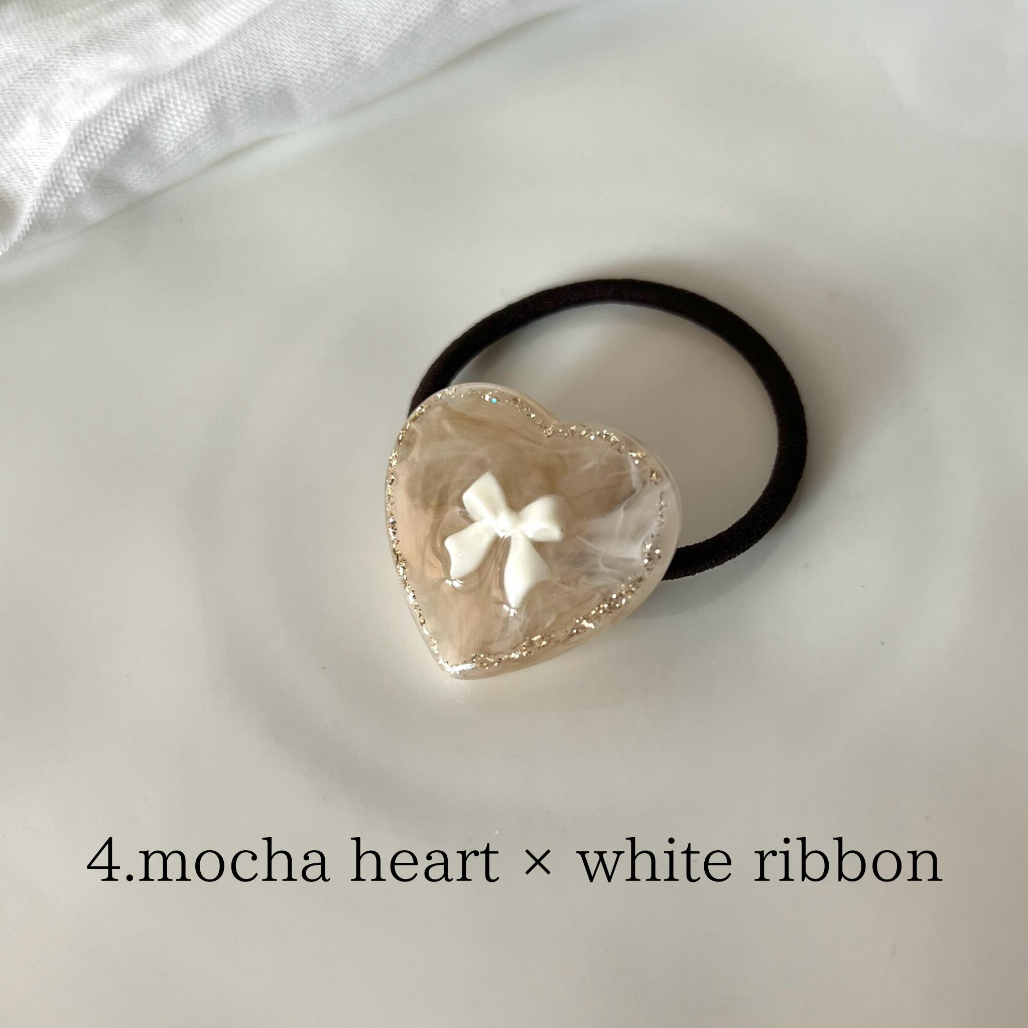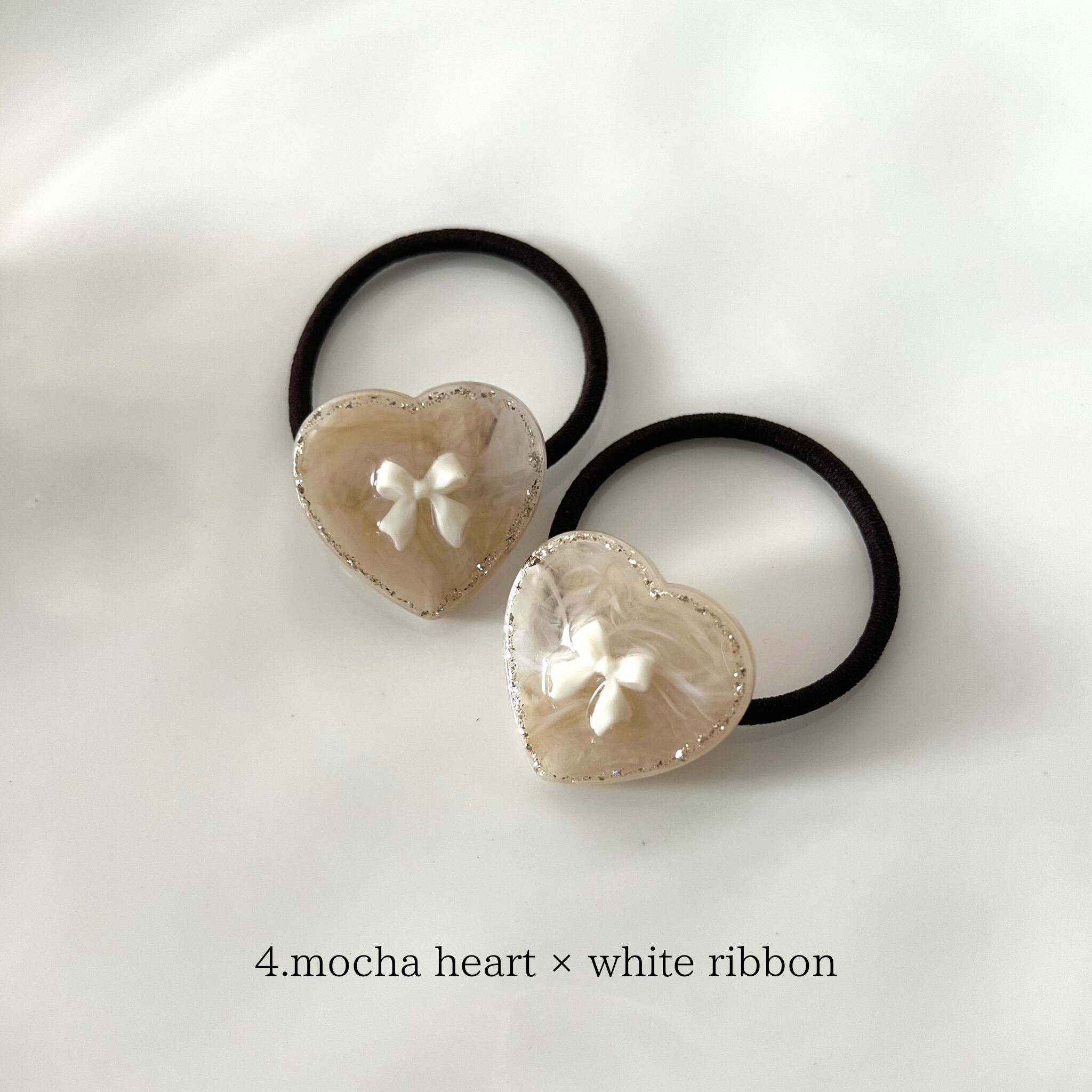 4. mocha heart × white ribbon