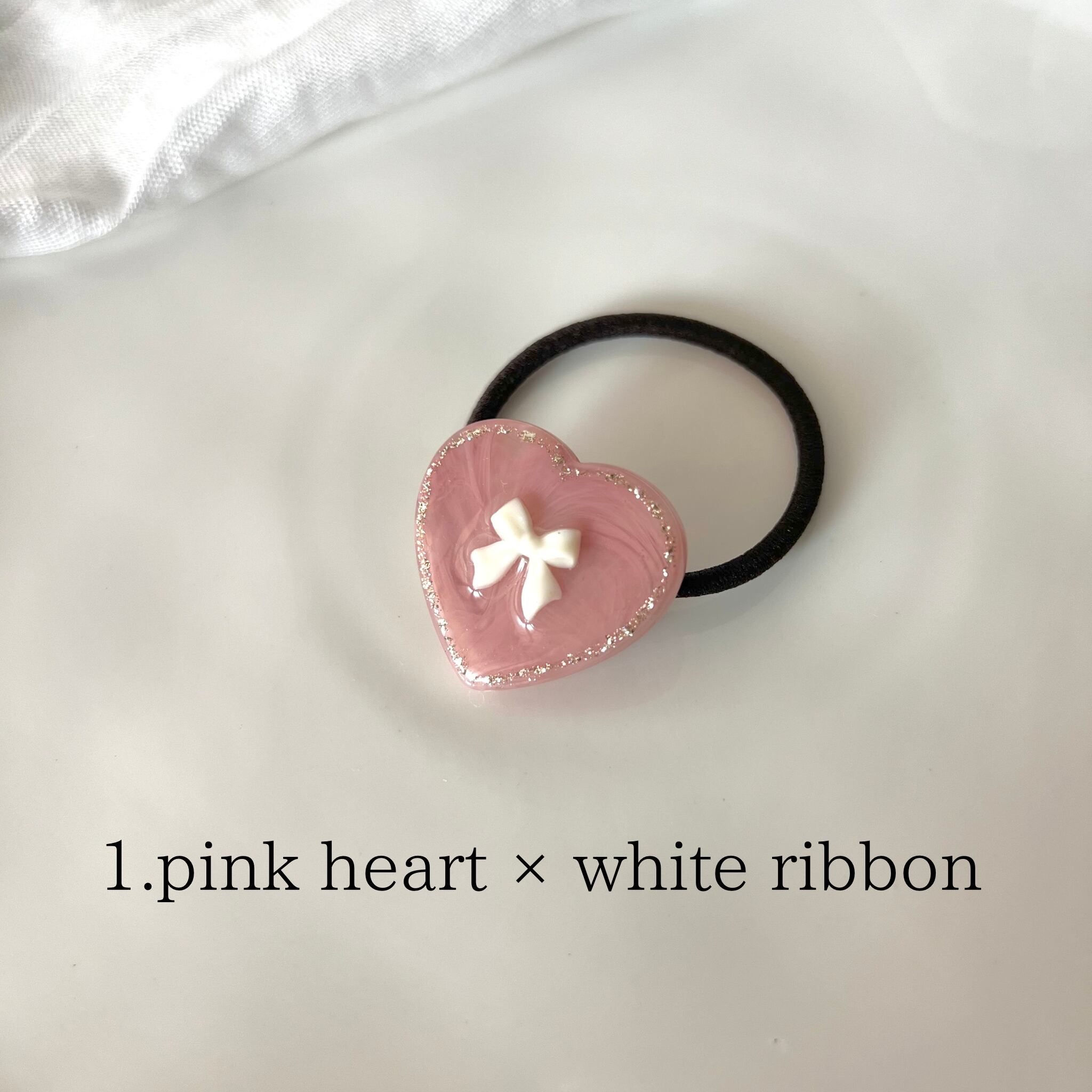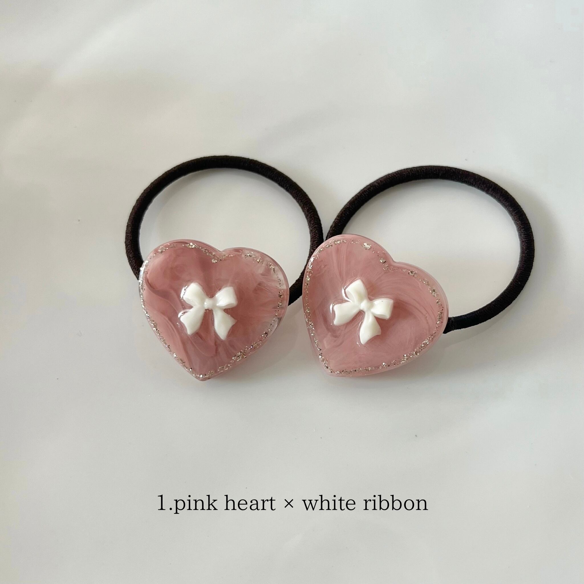 1. pink heart × white ribbon
