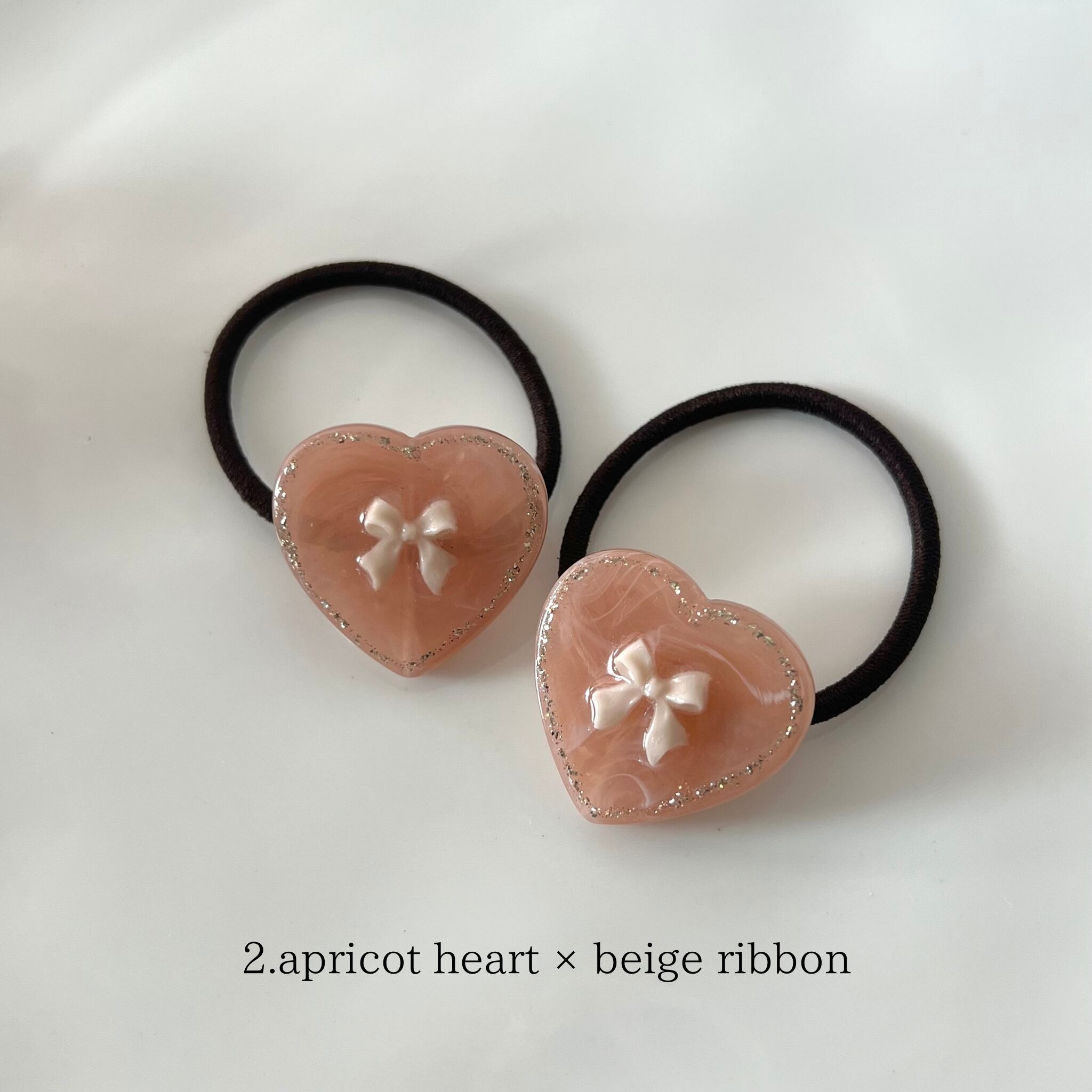 2. apricot heart × beige ribbon