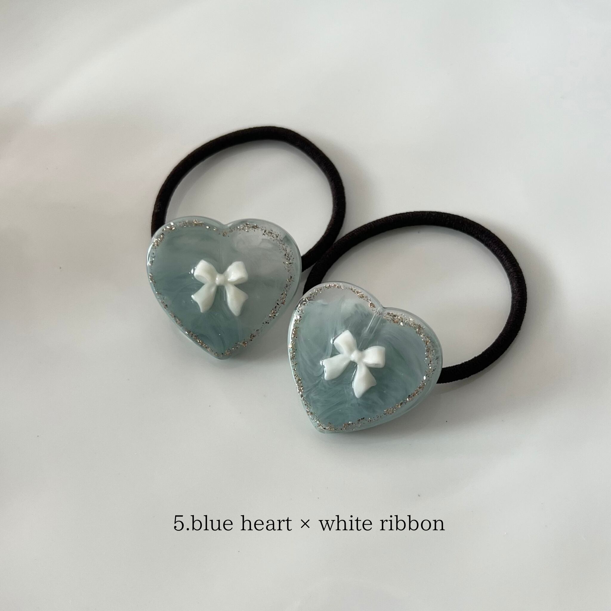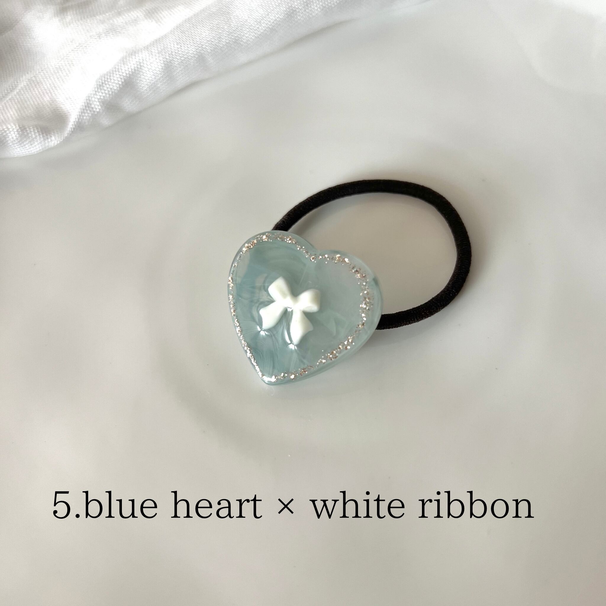 5. blue heart × white ribbon