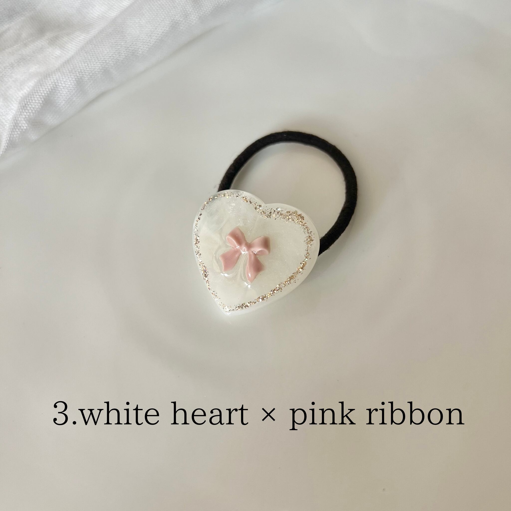 3. white heart × pink ribbon