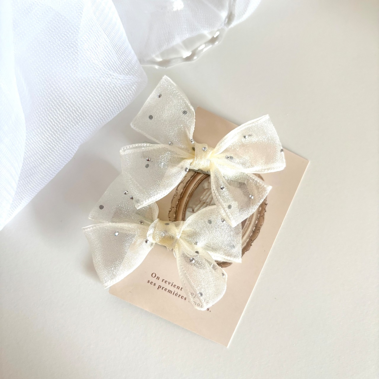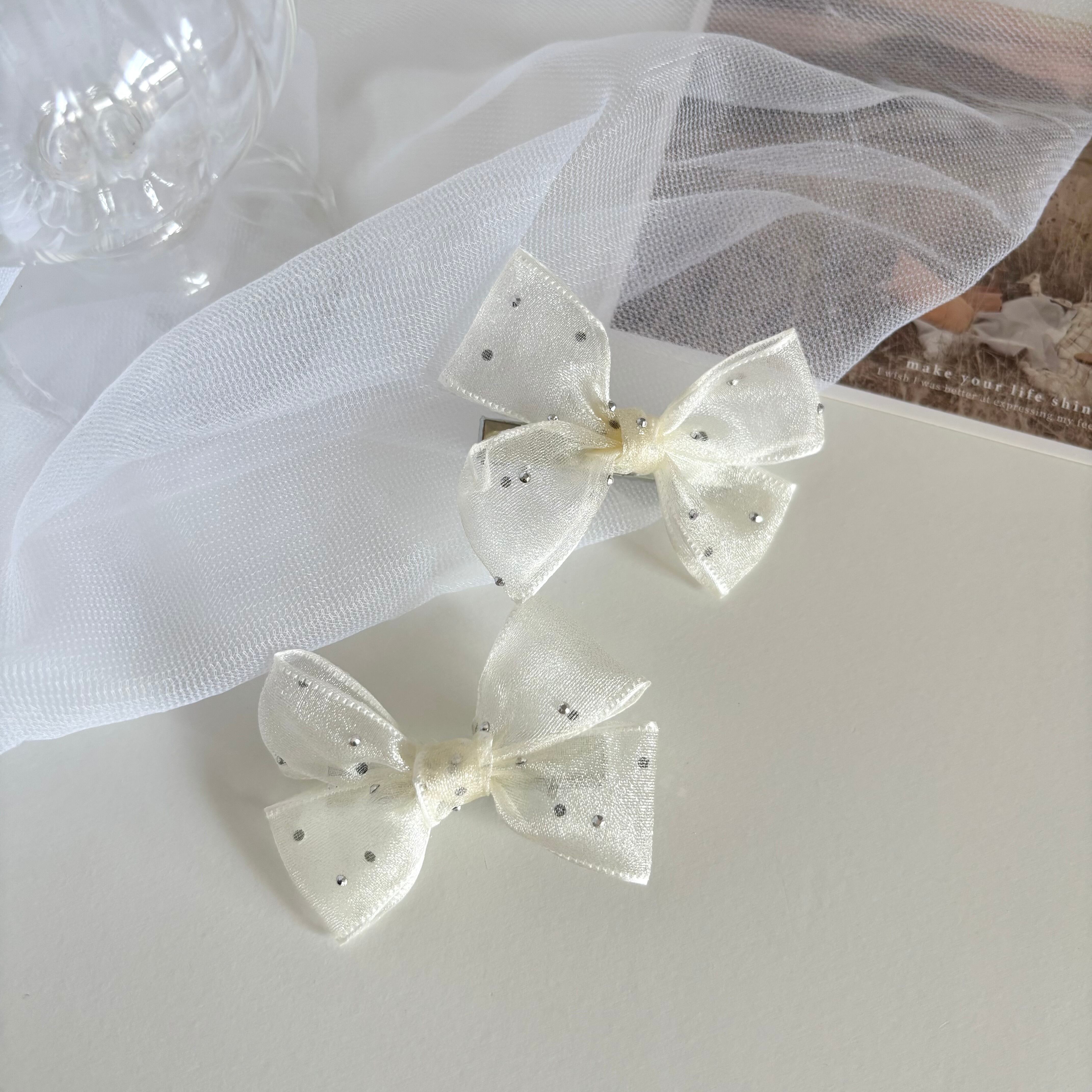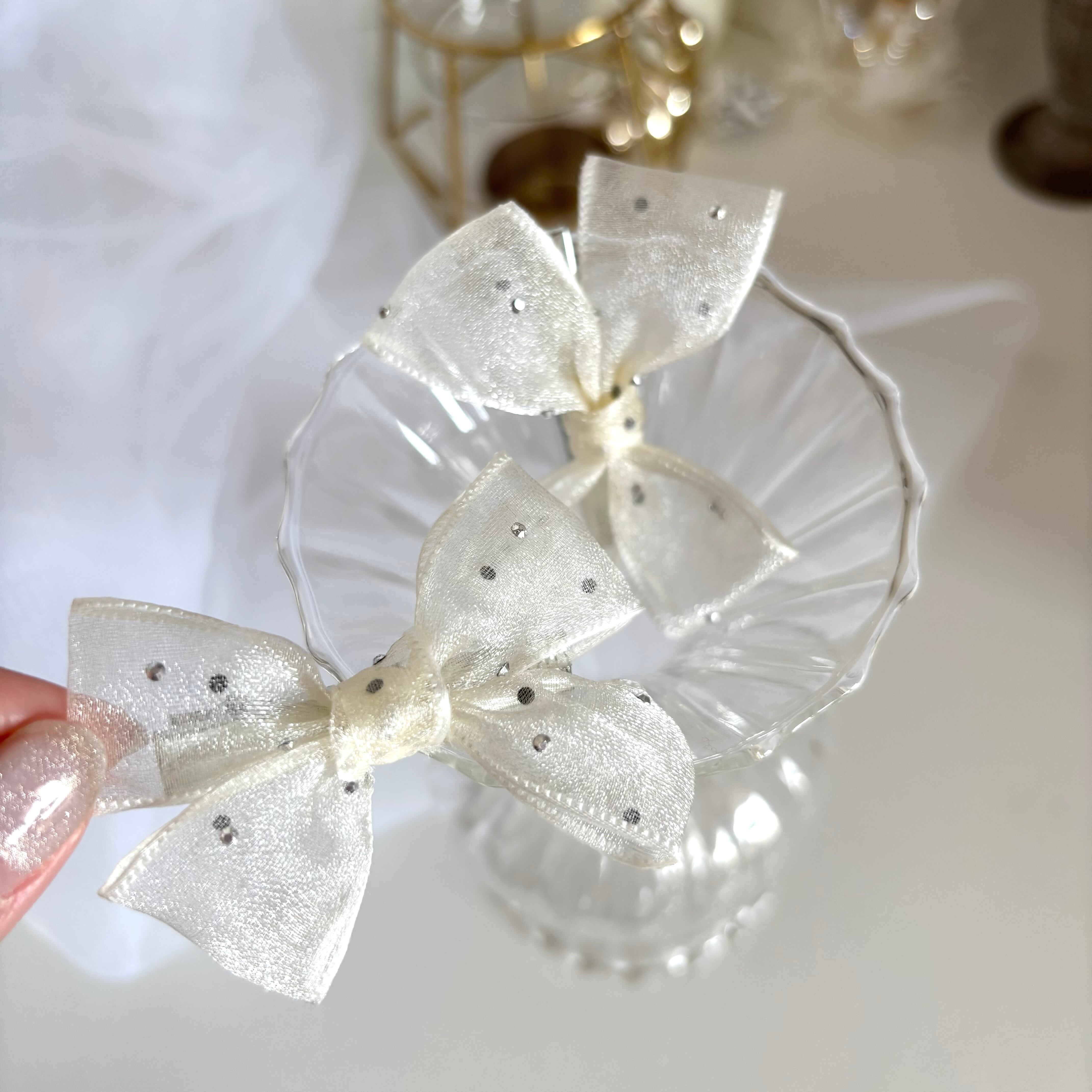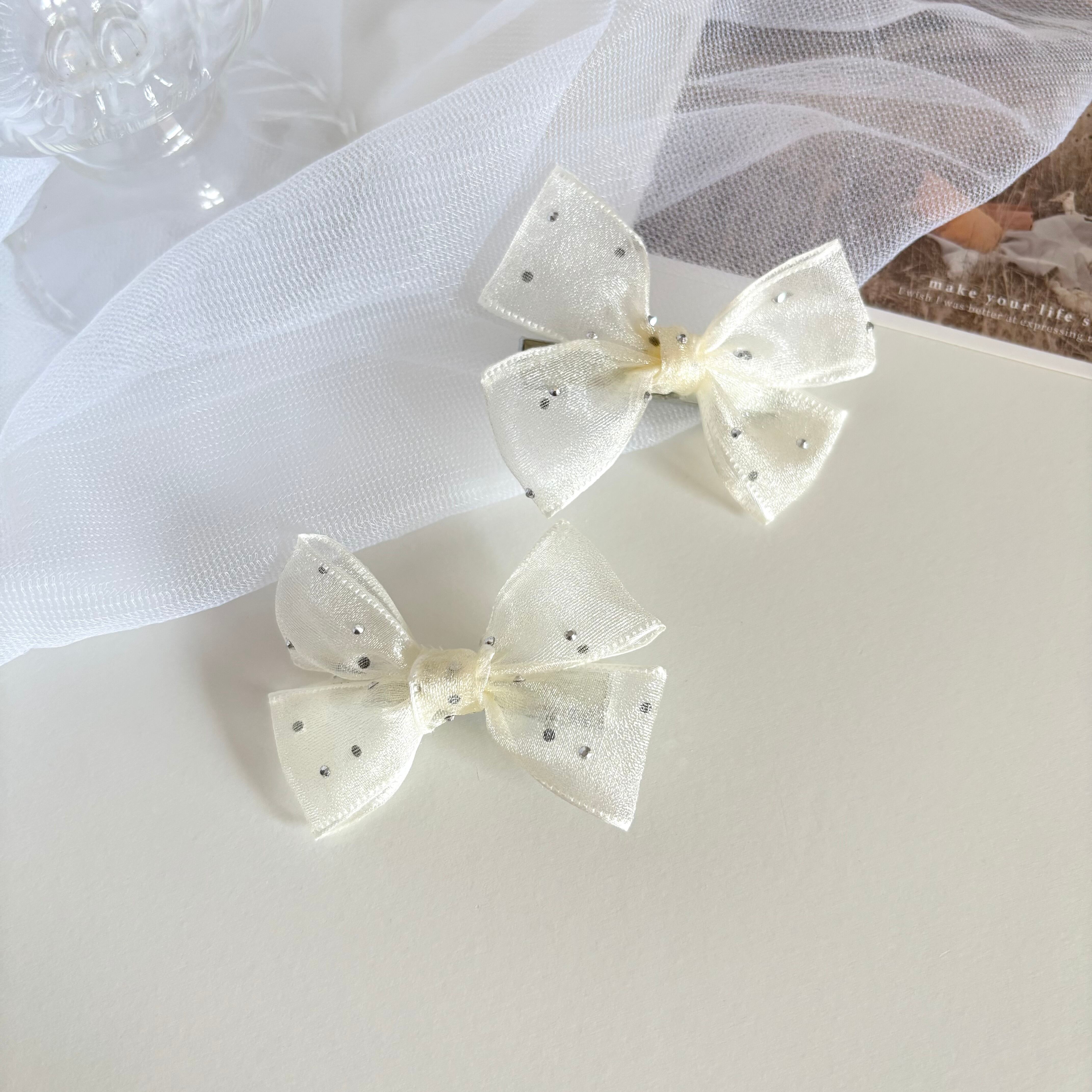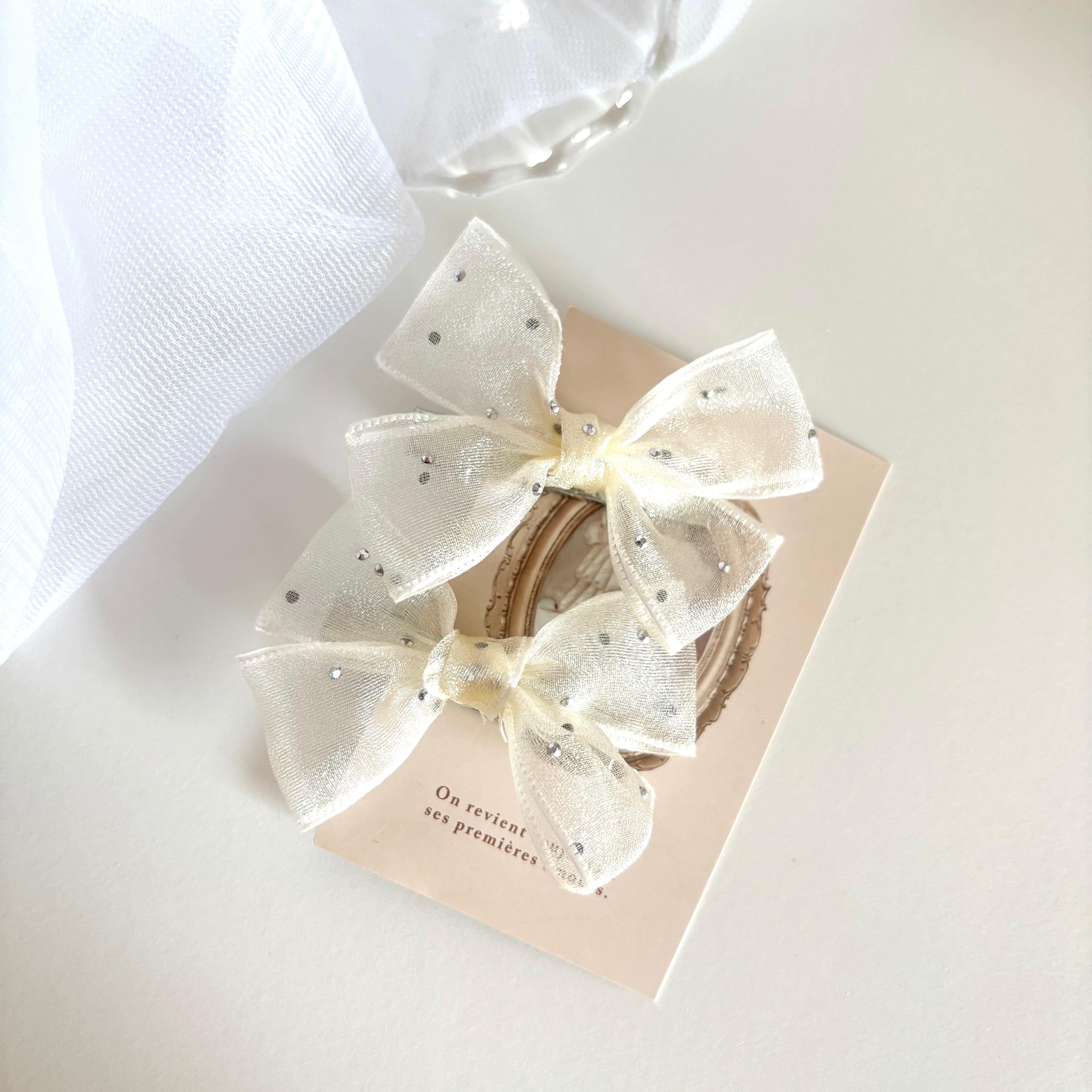 ドットチュールリボンヘアクリップ ホワイト