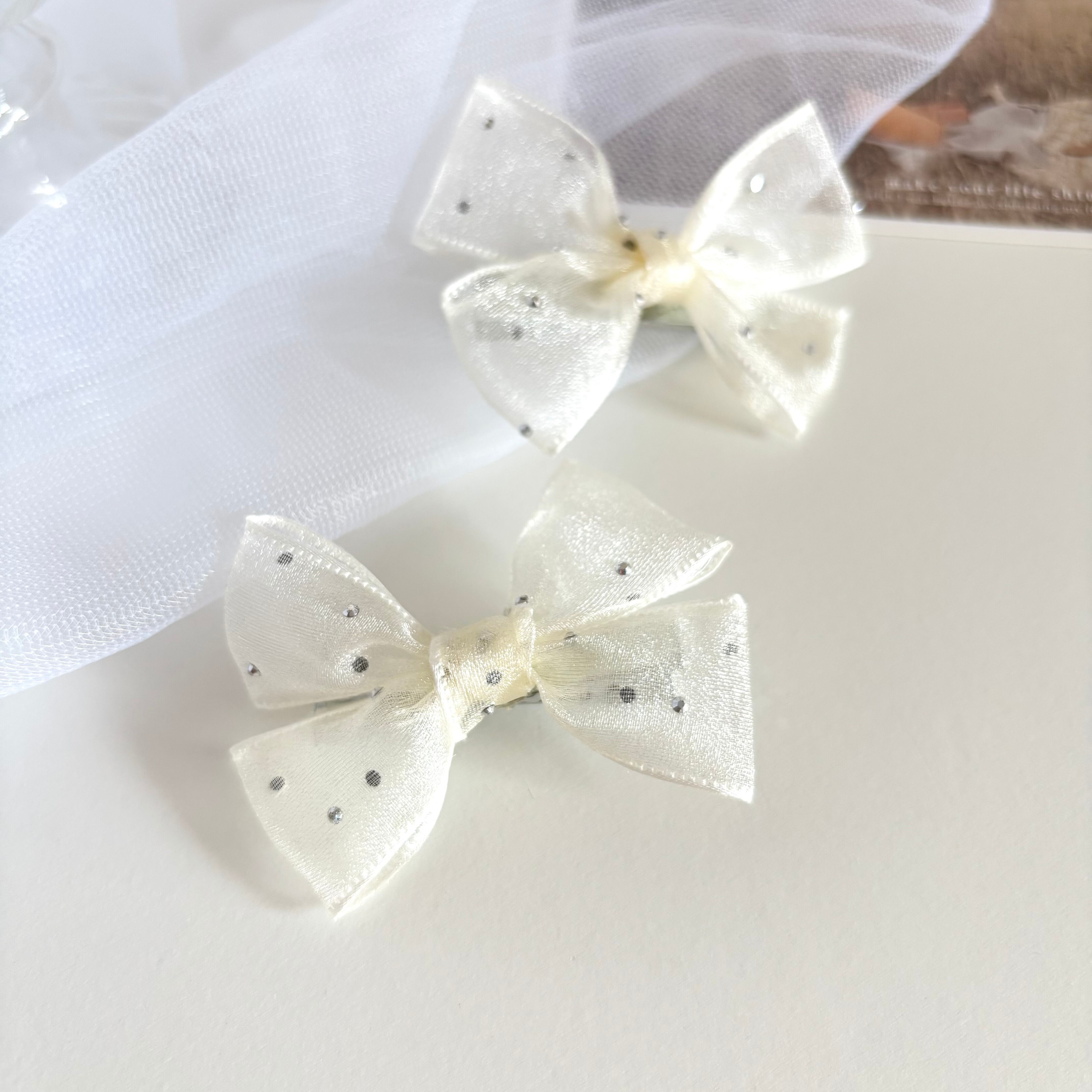 dot tulle ribbon hair clip white