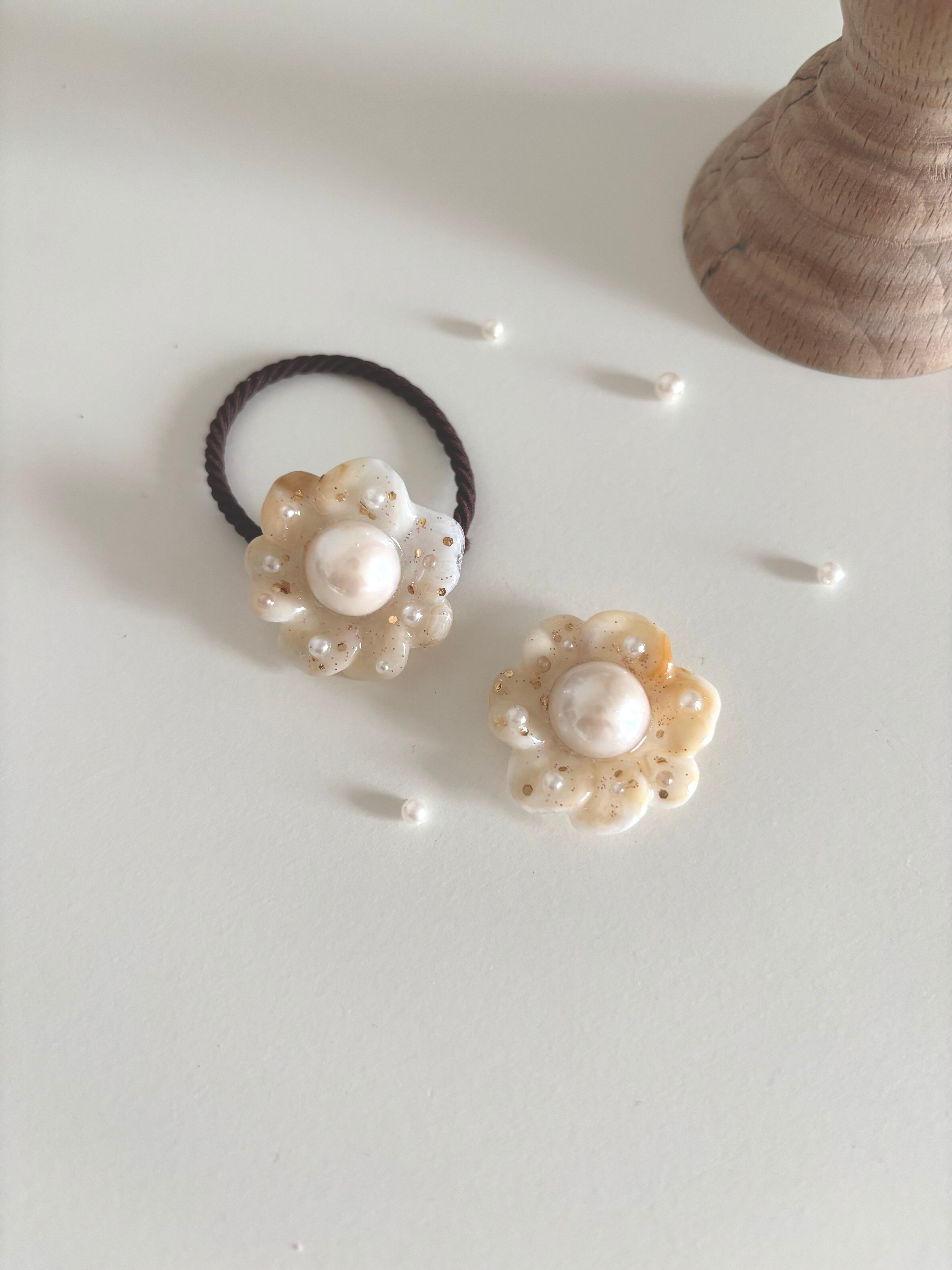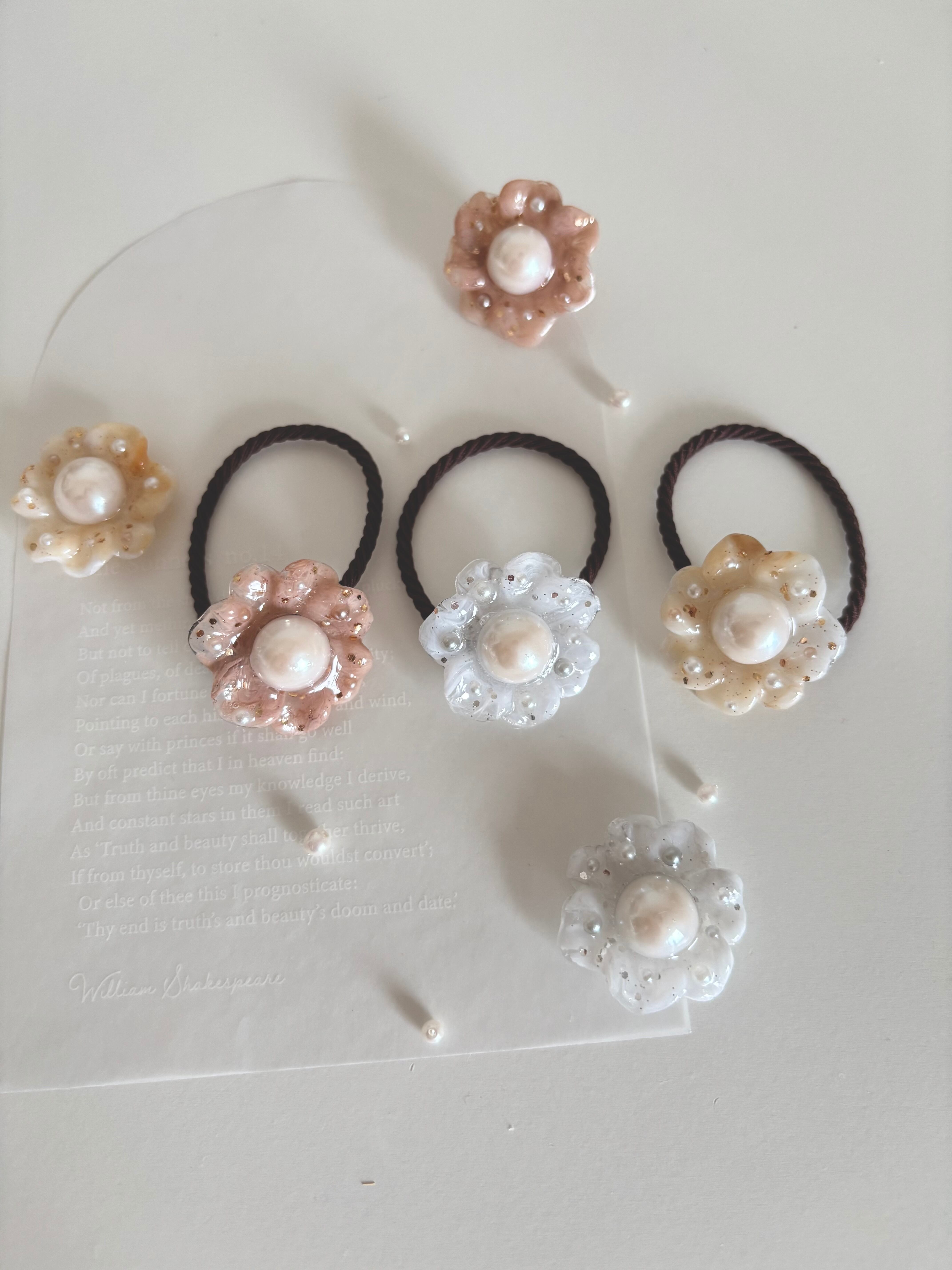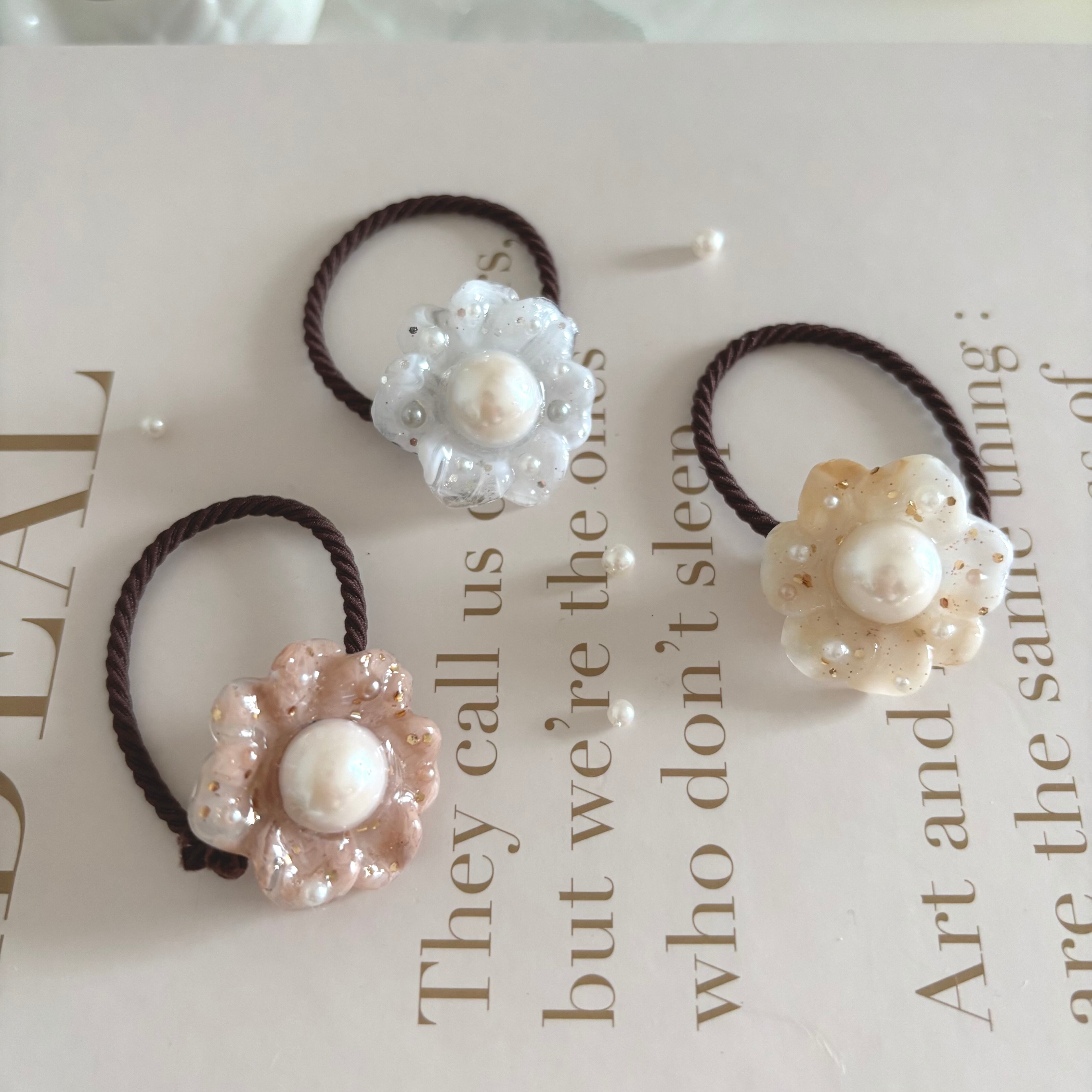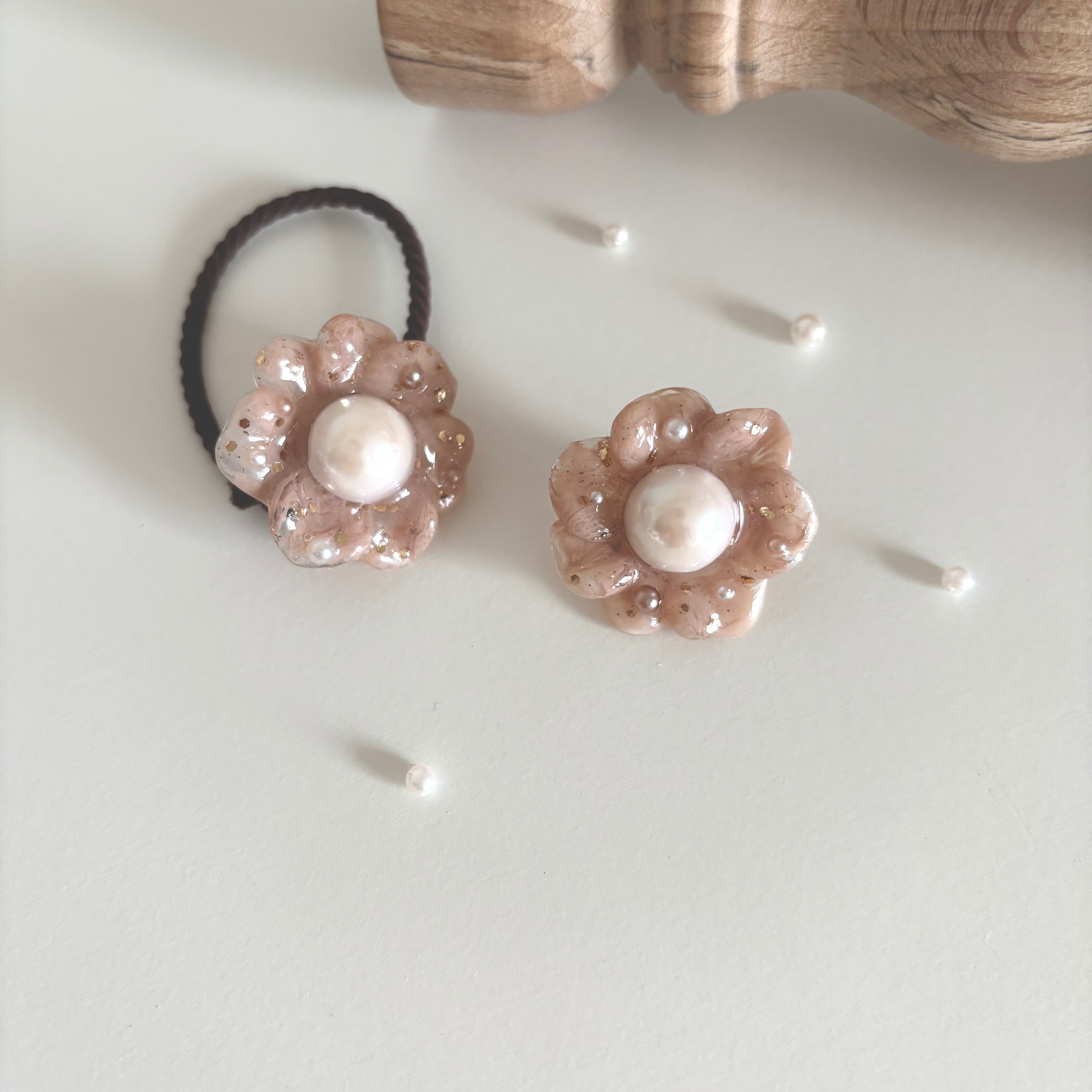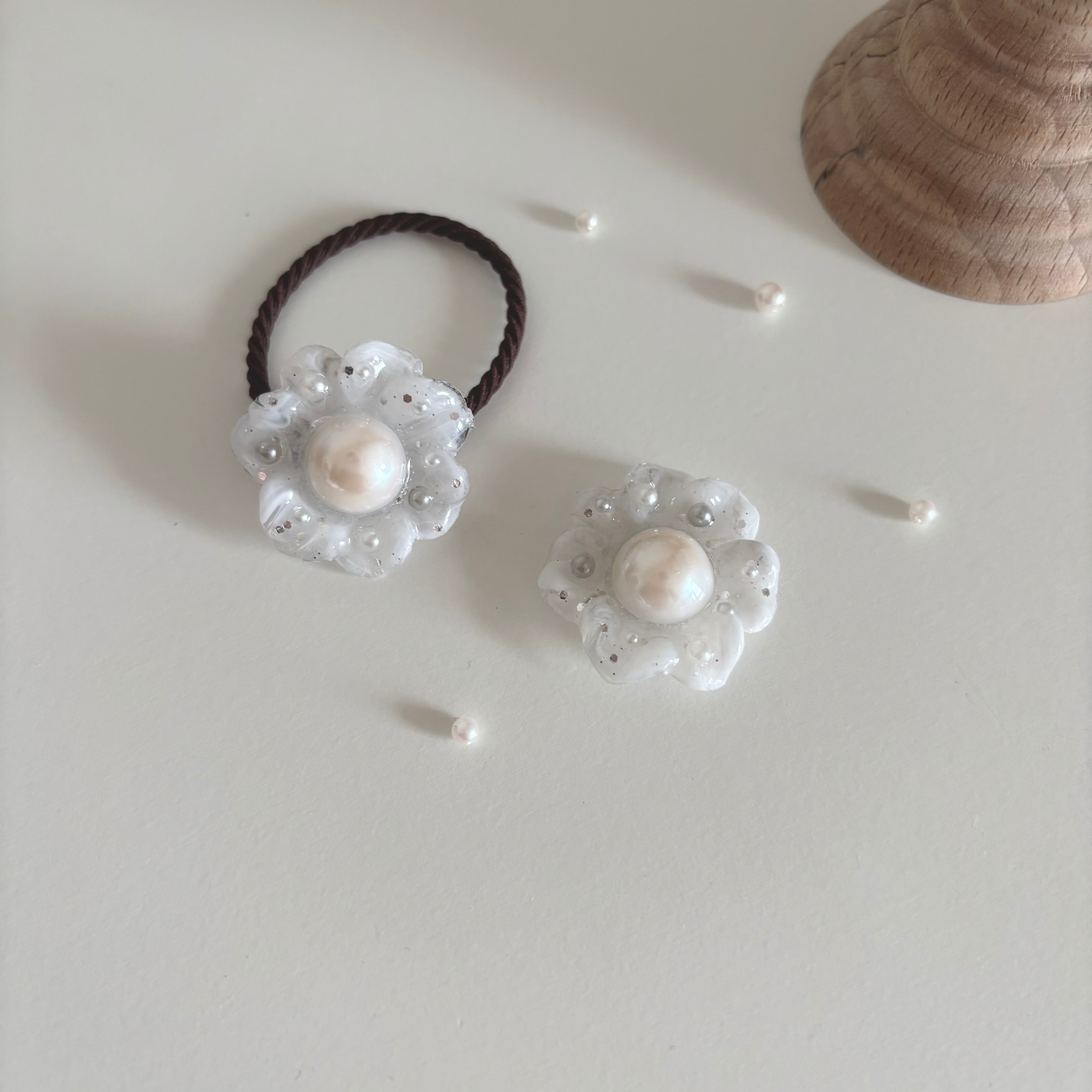 グリッターパールフラワー ヘアゴム/ヘアクリップ